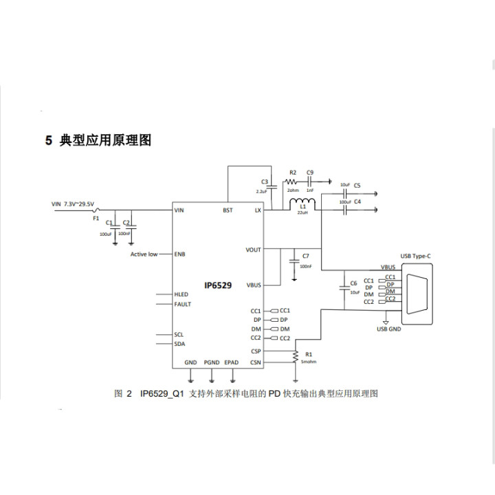 英集芯IP6529_Q1是一款适用于车载USB Type-C PD充电器方案的车规级DC-DC降压芯片,符合AEC-Q100 Grade 2标准配资平台投资,工作温度范围为-40℃至+105℃,可在极端温度环境下稳定工作。集成PD2.0/3.1、QC2.0/3.0/3+及Apple协议等所有主流快充协议。提供最大45W的输出功率。输入电压范围7.3V~29.5V,输出电压3.0V~21V。采用同步开关降压架构,内置功率MOS管,减少外部元件数量,简化电路设计,降低BOM成本。采用QFN24封装,体积小巧,便于集成到车载充电器中,节省PCB空间。