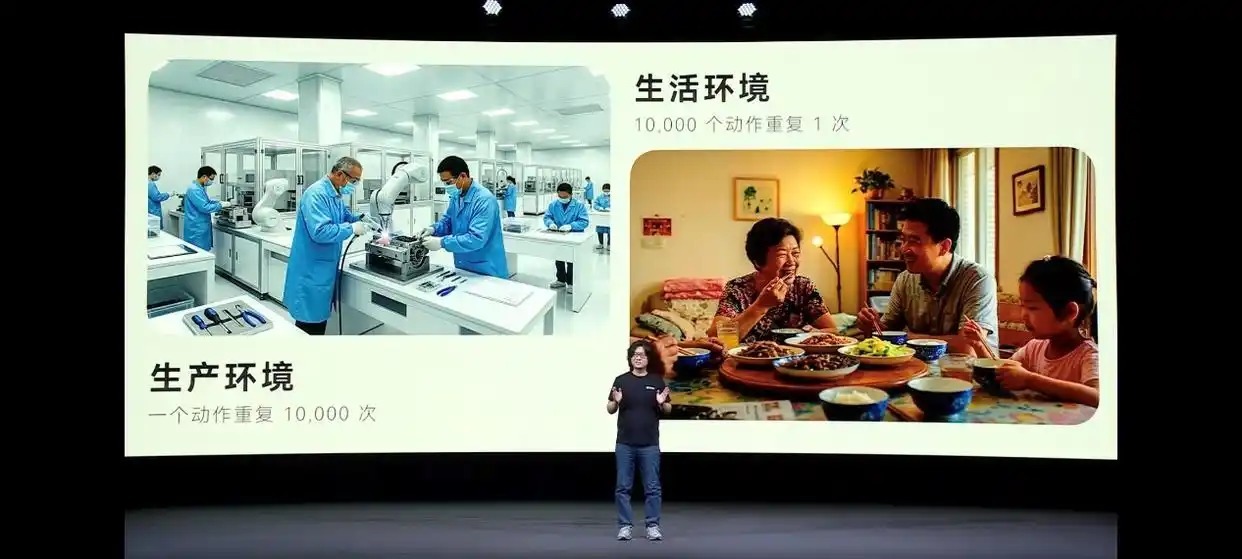“硬件已经到位了——双足、灵巧手、力控关节都很好。但大脑没有跟上。当前机器人的核心瓶颈不在本体,而在智能。家庭环境中的每一秒都可能出现全新事件:猫何时跳上桌子、孩子把玩具扔在哪里、地毯的摩擦力与实验室地板完全不同。现有技术无法处理这种随机性和碎片化,机器人进入家庭也被视为“这个时代最难的技术问题之一”。
